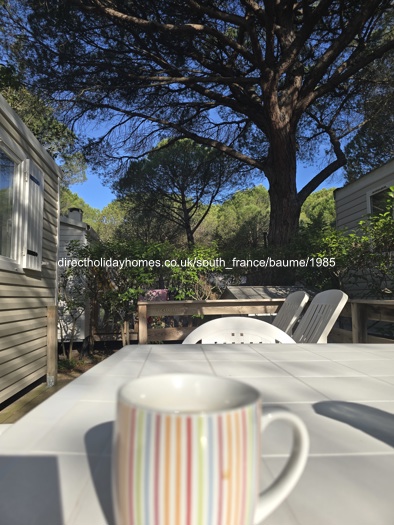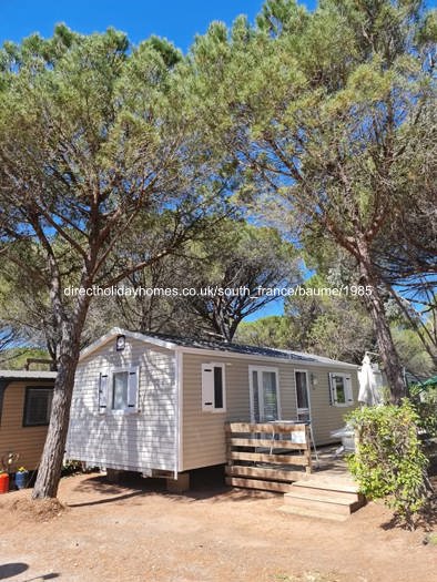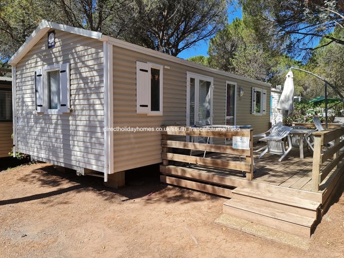 Our mobile home is situated in a lovely pine forest where there is plenty of shade. From the lounge you can walk straight onto a large deck.