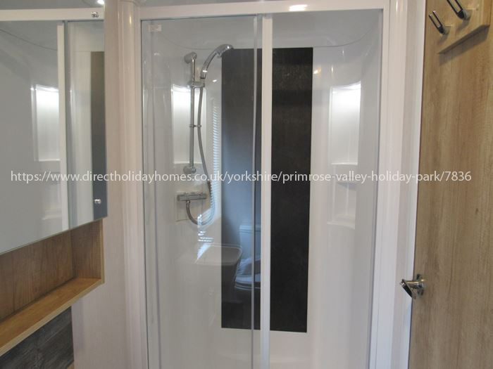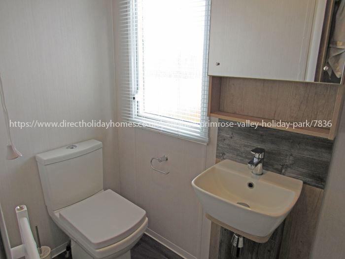 The caravan has 2 bathrooms. The family bathroom has a large shower, toilet, wash basin and cabinet. The second is an en-suite to the master bedroom.
