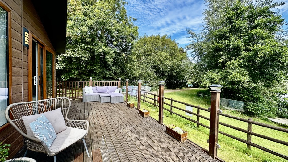 Patio doors lead onto the lovely, furnished decking area, which has glazed panels for an uninterrupted view; perfect for an evening with a glass of something sparkling, whilst watching the lake.