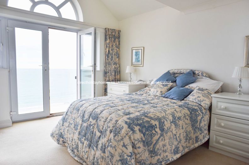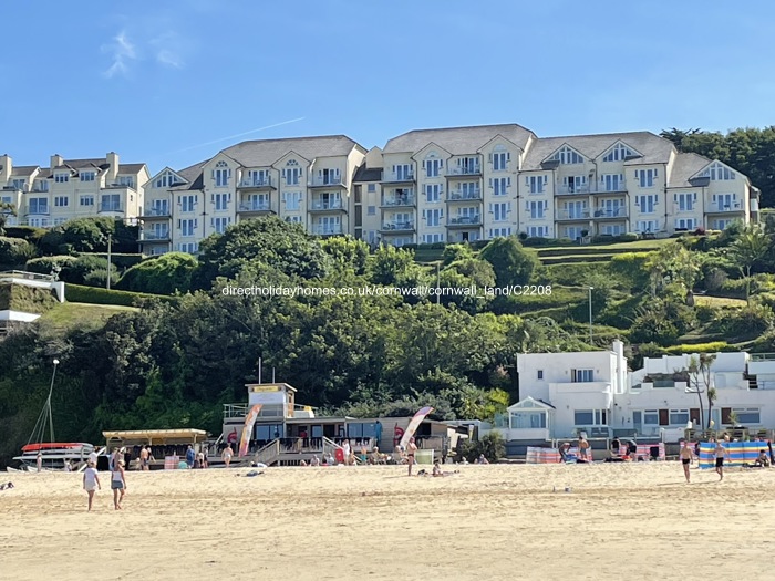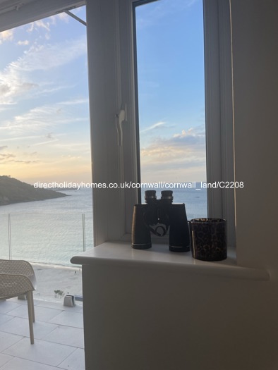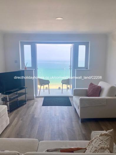 Stunning top floor, beach facing holiday apartment for hire in the well-known Carbis Beach Apartments, next door to Carbis Bay Hotel in St. Ives, Cornwall.
