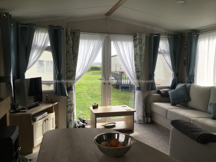We have a 2020 Swift Burgundy, 35 x 12 holiday caravan on Harlyn Sands Holiday Park in Cornwall, offering three bedrooms, two toilets, gas central heating and double glazing. It is sited on pitch 42, in a quieter part of the site facing the sea. We also have a balcony which overlooks the coast.