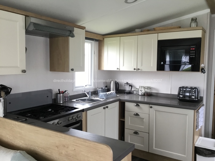 The kitchen is well equipped, to include a gas oven, microwave, kettle, air fryer and toaster. There is a fridge/freezer and plenty of crockery, cutlery and cooking equipment, as we use the caravan for our family getaway too! We also have a vacuum cleaner and various other cleaning stuff. We will also provide several tea towels for your use.