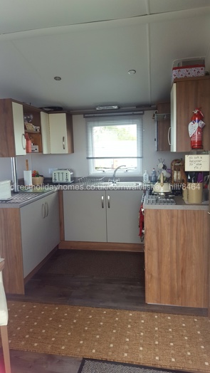 The lounge area is light, airy and spacious, with a flame effect electric fire and feature fire surround with mirror and shelving. The L-shaped seating is extremely comfortable and there's also a coffee table and 32" LCD TV and DVD. The striking soft furnishings and pastel shades help to create a pleasant and soothing ambience.