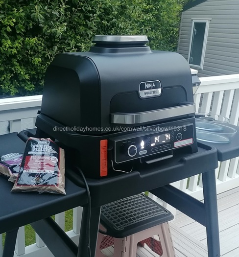 The kitchen is fully equipped and includes an air fryer, microwave/grill, fridge freezer, oven/grill and everything else you would expect from a deluxe caravan.