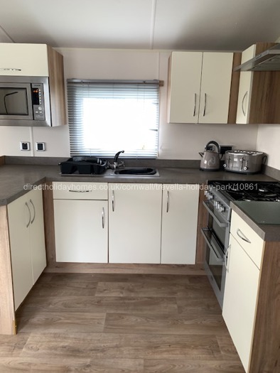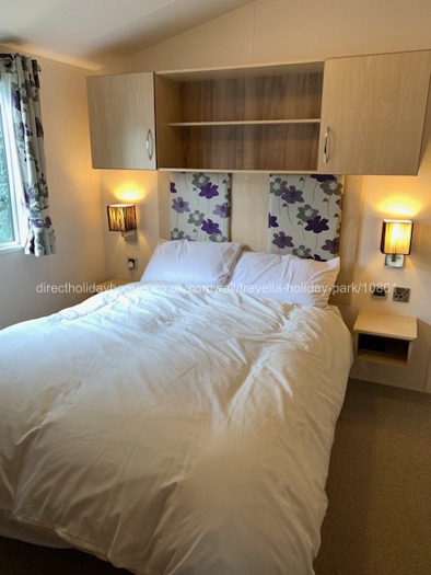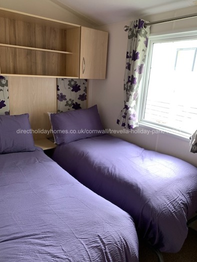 Boasting FREE Wi-Fi, our lovely holiday caravan for hire at Trevella Holiday Park in Newquay, offers two bedrooms and sleeps four guests in comfort, but can accommodate up to six guests. It has one double bedroom with en-suite toilet and hand basin, and one twin bedroom, along with a pull-out double bed in the living area for additional guests.