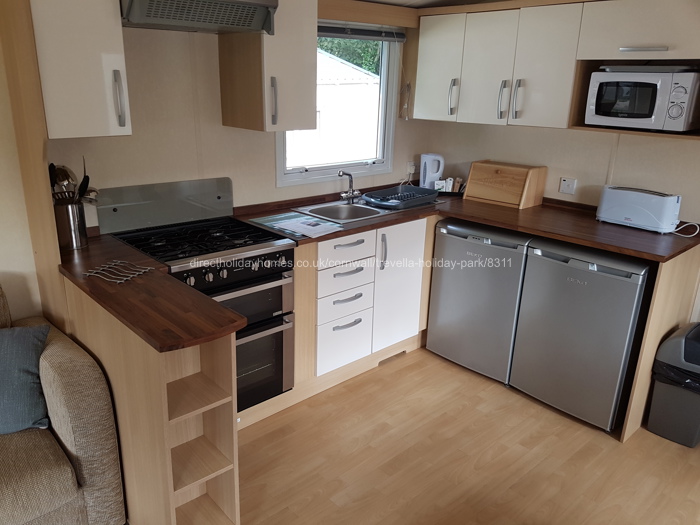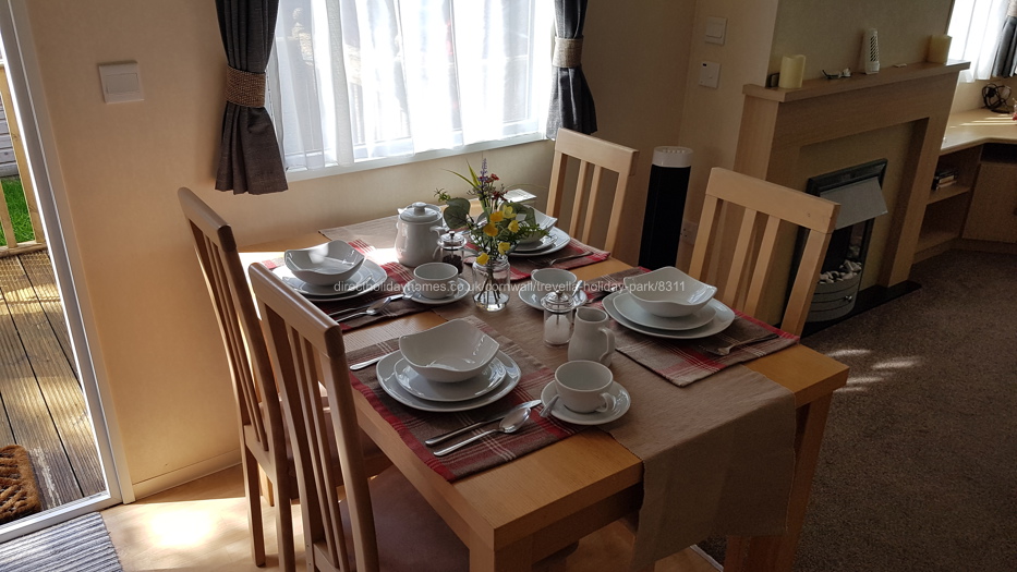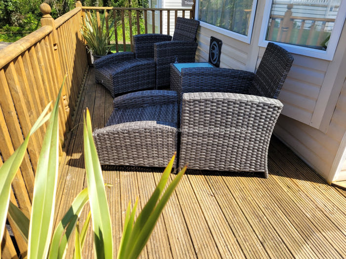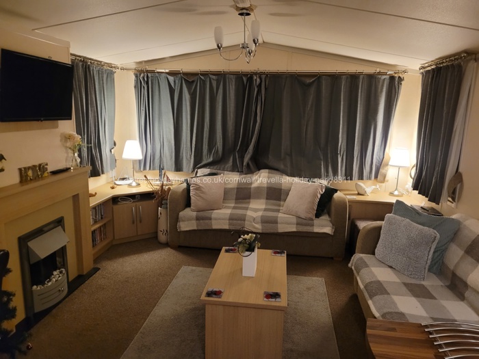 Luxury six berth caravan available for hire on Trevella Park near Newquay in Cornwall, benefitting from full double glazing and gas central heating. Pets are welcome too.