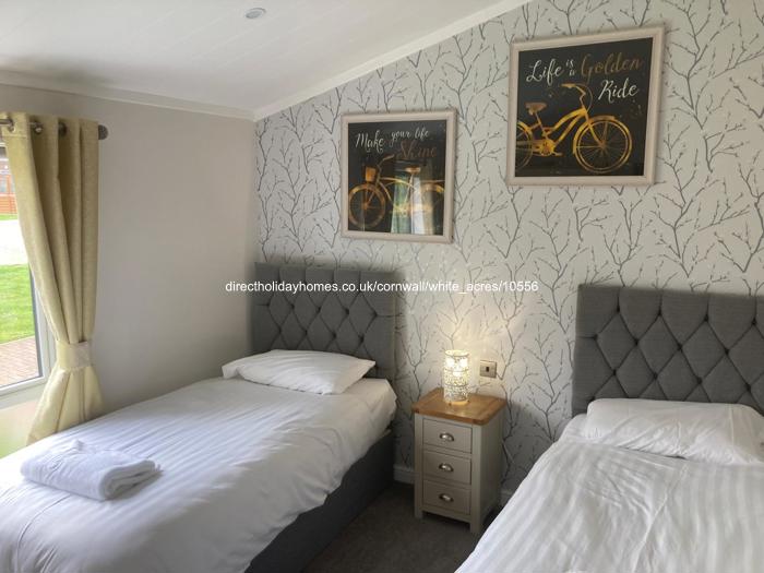 From the dining area we go into the hall and into the guest bedroom which is a large twin room with full sized single beds and plenty of wardrobe space. This is a really good sized room and is light and airy.