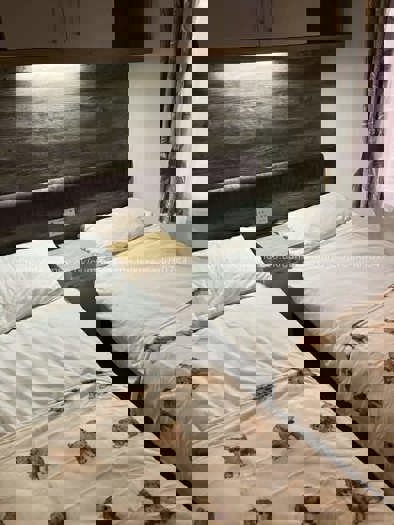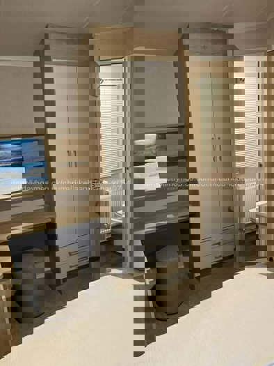 The caravan sleeps up to 8 guests. The master bedroom has a double bed, 32" TV, lots of storage and an en-suite bathroom. The further two bedrooms each has two single beds. The beds in one of the rooms can be made into a double bed if preferred. In the living room there is a pull-out sofa bed within the 3 seater sofa.