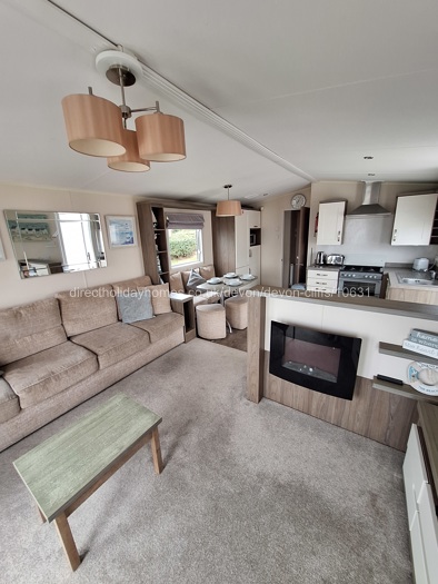 This well positioned caravan to let on Haven’s Devon Cliffs Holiday Park, is situated on a corner plot providing ample green outside space to the side, along with the large wraparound decking that provides great sea views.
