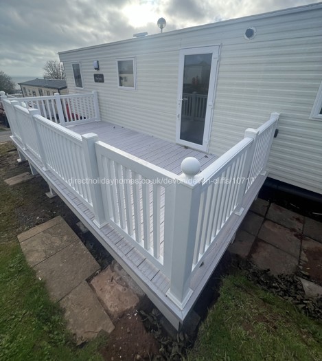 We have private parking next to our stunning 3 bedroom caravan at Devon Cliffs, along with a side veranda with seating and gorgeous a sea view.