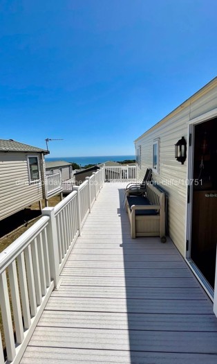 Outside we have a beautiful wraparound decking with stunning sea views.
