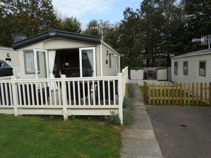 Situated on the Triassic coast of East Devon, our 2 bedroom ABI Haywood caravan with double glazing, central heating, Sky TV, Wi-Fi, sea view from the decking & separate secluded patio with furniture.