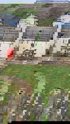 The living area of our caravan comprises a well-equipped kitchen and a cosy lounge with an electric fire. We have also provided a few board games and colouring for rainy days.