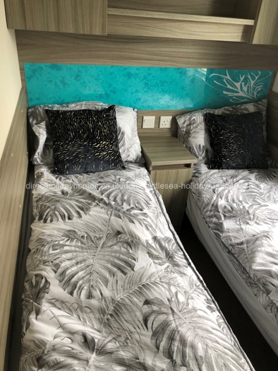 This well-presented, homely caravan on Littlesea Holiday Park, has three bedrooms. The main bedroom has a small double bed with wardrobe, TV and DVD player. Bedrooms two and three each have two single beds. We have no sofa bed, so can only accommodate a maximum of 6 guests.