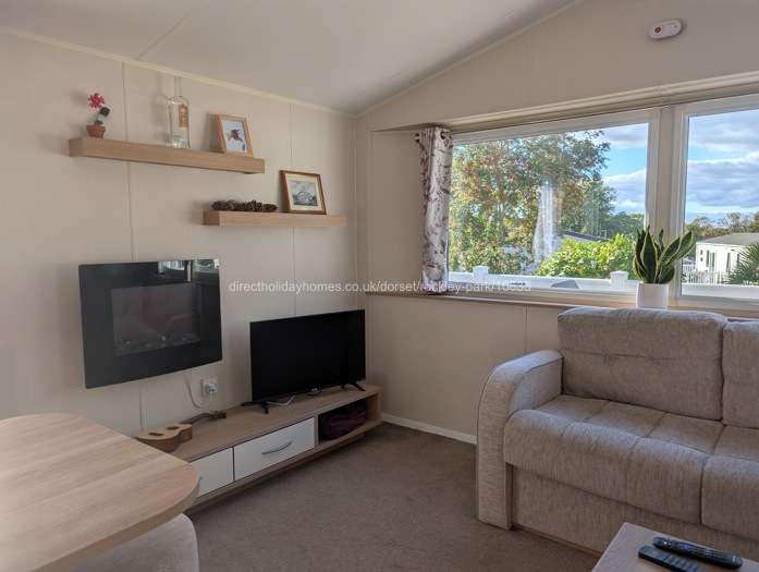 The lounge area has a smart TV, Spotify-connect stereo/radio and an electric fire with mood lighting, making it a cosy space to unwind at any time of year.