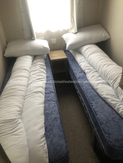 38’ x 12’ Willerby Brockenhurst caravan for hire on Bowleaze Cove Holiday Park & Spa in Weymouth, situated in a quieter area of the Park backing onto the stream.
