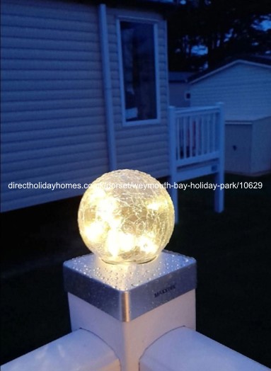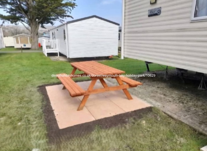 Our Weymouth Bay caravan has an outdoor patio with picnic bench, along with a gated veranda.