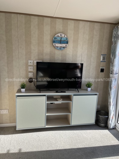 Our Silver grade caravan at Weymouth Bay Holiday Park, offers a double bedroom with TV and an en-suite toilet with hand basin, two further bedrooms with twin beds and also a double sofa bed in the lounge. All bedrooms have wardrobes and all the beds have mattress protectors on. The Lounge has a brand new 40” smart tv. There is also an iron and ironing board for your use.