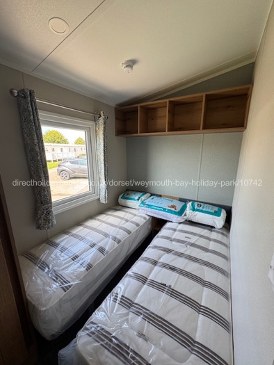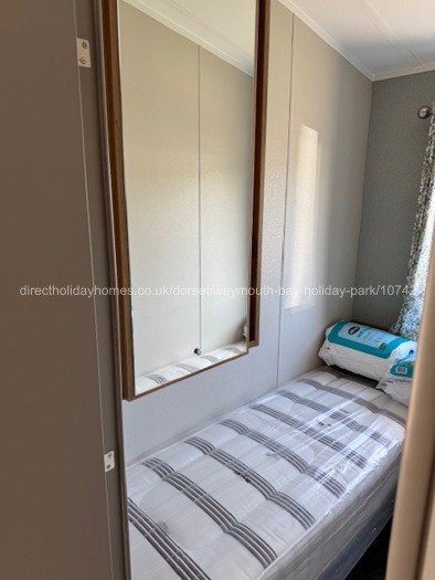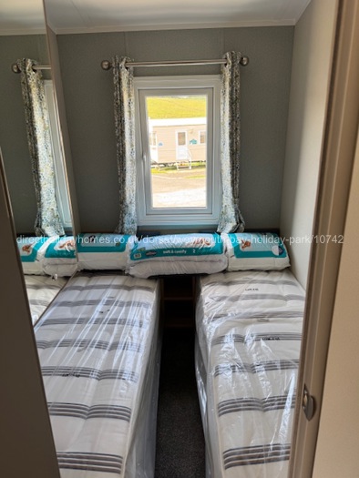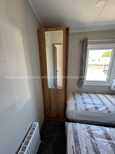 The twin bedroom has a bedside cabinet, overhead storage, a wardrobe with mirror. This room is heated by a radiator.
