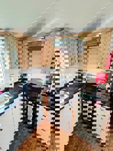 The kitchen has all mod cons, including a microwave, air fryer, coffee machine and a built-in fridge freezer, along with all cookware, crockery and cutlery.