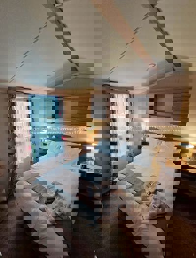 The caravan has two bedrooms. The master bedroom has a king size bed and en-suite bathroom, while the comfortable twin bedroom has two single beds and is ideal for the little ones.