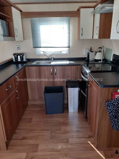 This pet friendly caravan for hire at Hoburne Naish, is all electric, double glazed and central heated.