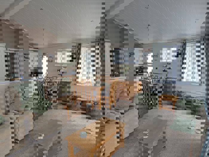 Inside, the lodge boasts a bright, modern, open-plan living space with everything you need for the perfect getaway: