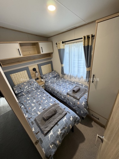 Inside our caravan you will find a cosy lounge area, full fitted kitchen equipped with everything you need for a self catering break; along with a modern bathroom and 2 bedrooms. The master bedroom has an en-suite toilet.