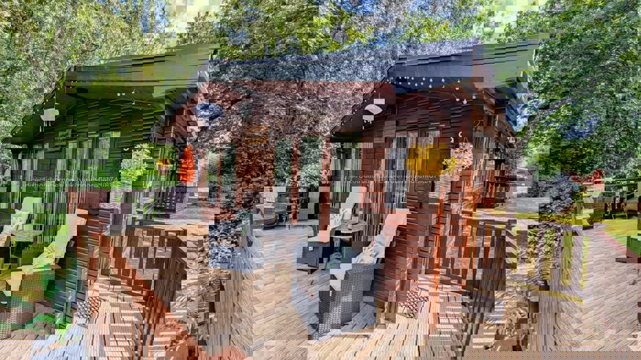 A flat hard-standing area directly in front of the lodge with allocated parking for 2 cars. Three small steps lead up to an enclosed decking area with railings so it is safe for children to be able to play outside or for you to sit and enjoy a glass of wine in the evening sunshine. There is a table and chairs on the decking area and cushions for the larger chairs are under the single bed in the second bedroom. All we ask is that you put them back on departure or if you are going out for the day and it looks like it may rain.