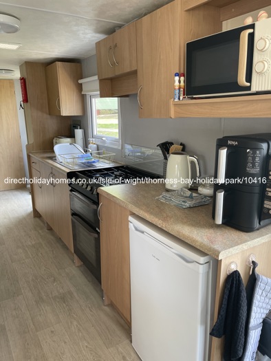 Within our caravan you will find everything you could need for a great holiday on the Isle of Wight. In the lounge is a flat screen TV with DVD player and selection of DVDs, while in the fully equipped kitchen you’ll find an air fryer, along with all the usual appliances etc.