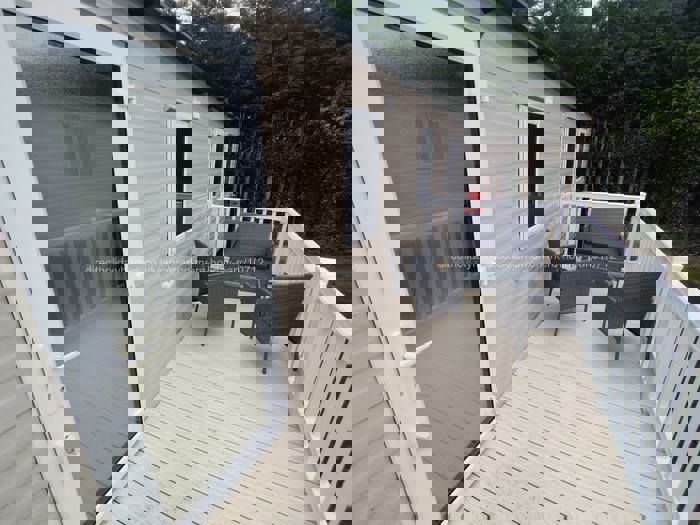 Outside we have decking with garden furniture, along with a parking space (for 2 cars) alongside the caravan.