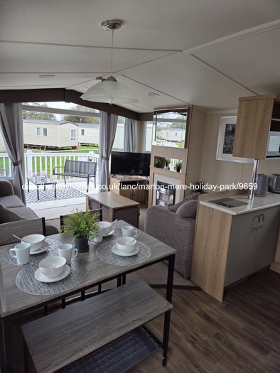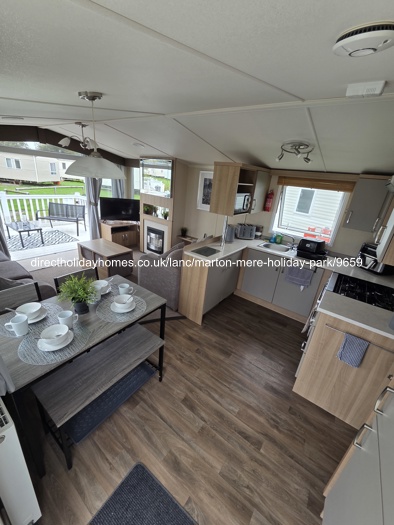 Our double glazed and central heated caravan for hire on Marton Mere Holiday Village, sleeps 8 guests in one double bedroom (with en-suite), two twin bedrooms and a sofa bed in the lounge.