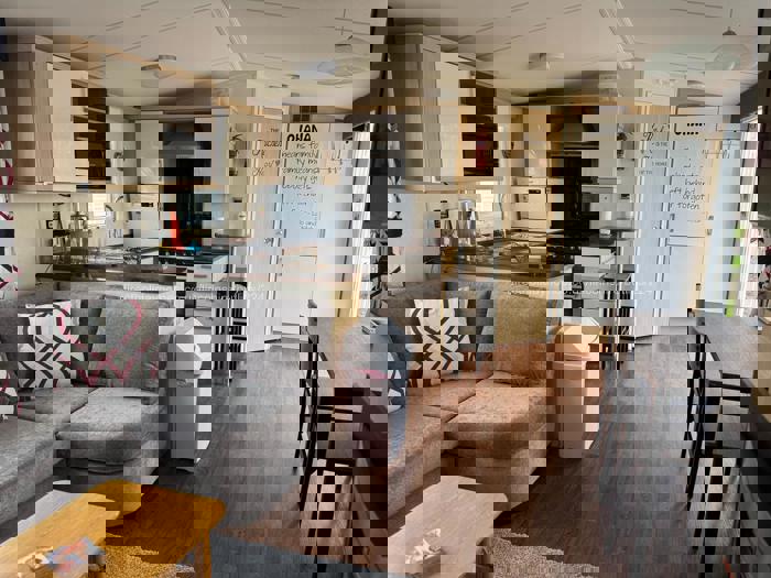 Our caravan for hire on Butlin's Resort in Skegness, has a full range of appliances, including colour TV/DVD, CD/radio, gas oven, microwave, vacuum cleaner, iron and ironing board, fully equipped kitchen, patio set, free electric and gas.dish washer ,free wifi