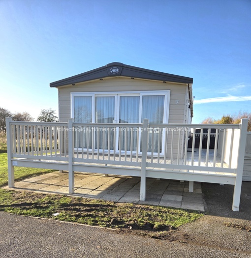 43' x 14', 3 bedroom, 2 bathroom, ABI Beaumont lodge for hire on Butlin's Resort Skegness, set on an extra large corner plot, complete with a front and side, gated decking.