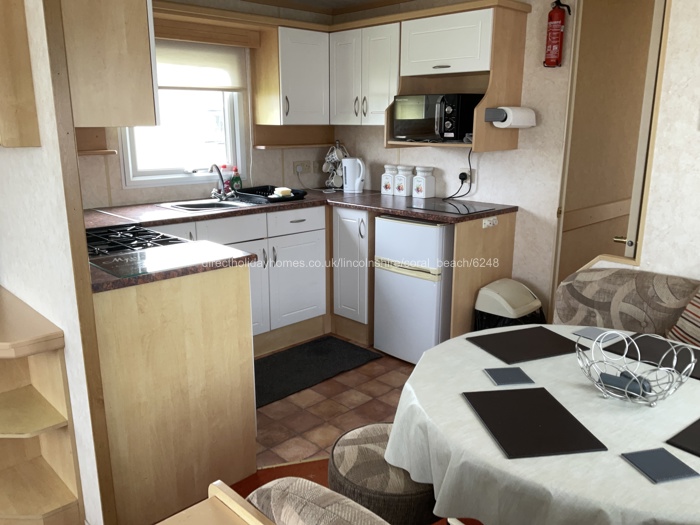 In the lounge there is a 32" TV/DVD, wrap around seating and a dining table to seat 8. Lounge heating is by gas fire.