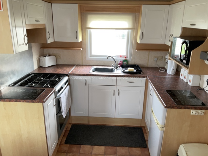The kitchen has lots of storage, a full size cooker, under counter fridge/freezer, toaster,, microwave and kettle, along with all pots, pans, crockery and cutlery.