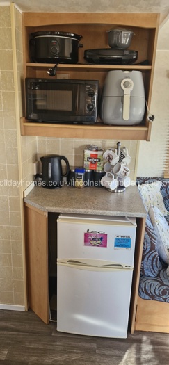 The kitchen is well equipped, and includes a full cooker, fridge with freezer, microwave, air fryer, slow cooker, toaster and a health grill .