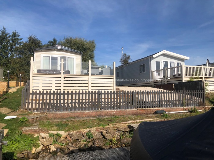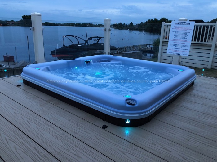 Outside is a composite decking veranda with clear glass to the front and sides making the most of the sensational view over the lake. Also relax and enjoy your surroundings in the sunken Hot Tub that seats 6 which has LED backlit waterfall, lighting, jetting, foot wells and cup holders, without moving from the comfort of your own luxury holiday home. Rattan furniture is also on the deck for those of you who would just like to sit back, relax and enjoy the view