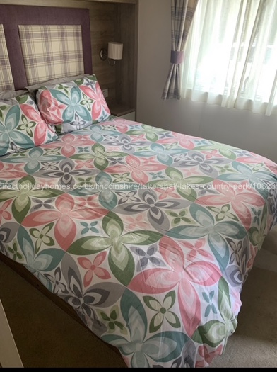 Light floods into this caravan through the huge patio doors. The kitchen has built in oven with grill, integrated dishwasher plus tablets, fridge, freezer and microwave, 4 burner hob. Plenty of work top space and everything for the kitchen you would ever need is provided pots, pans, cutlery, glasses etc. The dining table has a great vantage point to enjoy the views over the stunning water ski lake.