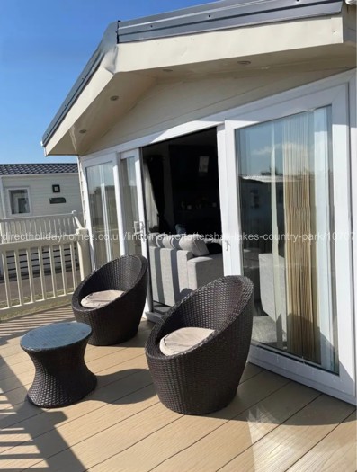 This lovely, modern caravan with private hot tub on an enclosed decking, has all modern amenities.