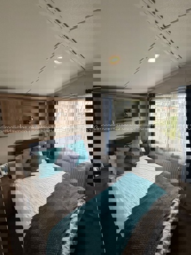 Our pet friendly holiday home for hire at Tattershall lakes in Lincolnshire, has 3 bedrooms, comprising a master bedroom with double bed and an en suite, along with two twin bedded rooms. There is also a double sofa bed in the lounge, so the caravan will comfortably sleep 8 guests.