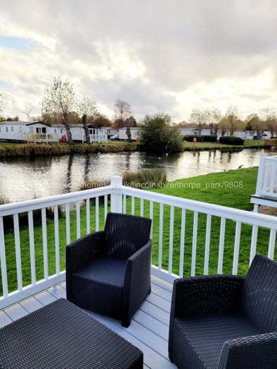 Our caravan has a full wraparound decking area, which faces onto the lake where there are swans, ducks, geese, etc. and lovely for watching the sun setting! There is a lockable gate too, so it’s secure for any dogs or kids!