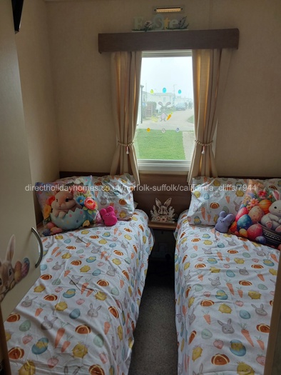 Our holiday home for hire at California Cliffs Holiday Park, has 3 bedrooms, 1 double and 2 twin, all with 24" tv/dvd player, a central heating radiator, plus a small electric heater for localised heating.