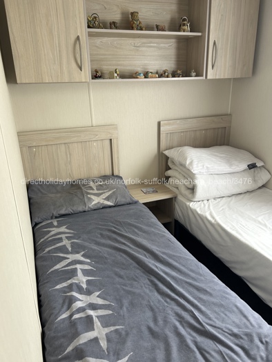 It is a fully equipped 3 bedroom caravan that sleeps up to 8 in 1 double bedroom, 2 twin bedrooms and a pull-out bed in the lounge.