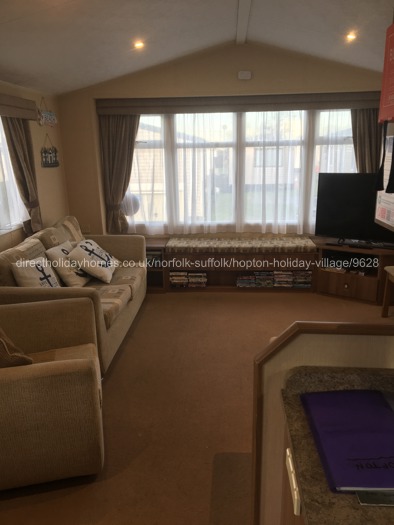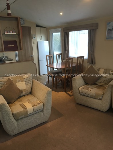 Lovely, secluded holiday caravan for hire on Hopton Holiday Village, with a unique window seat to the front and offering easy access to the beach.