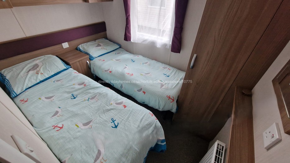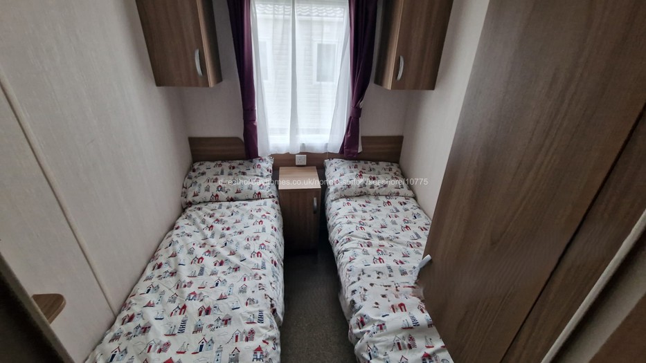 The three bedrooms are comprised one double and two twin. The master bedroom has an en-suite, a standard double bed with bedside cabinets, a fitted wardrobe, mirror and small dresser, while the two twin rooms, each have two single beds and a single fitted wardrobe.
