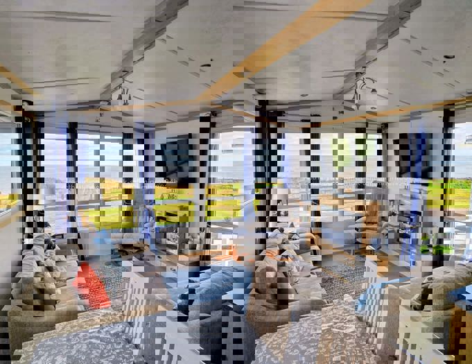 Our bright, airy, and comfortable luxury sea view caravan benefits from panoramic uninterrupted sea views on a premium front row plot. There is a large veranda with outdoor seating. It is situated on the Norfolk coastal path with beach access. Perfectly positioned to enjoy stunning sun rises and sunsets.