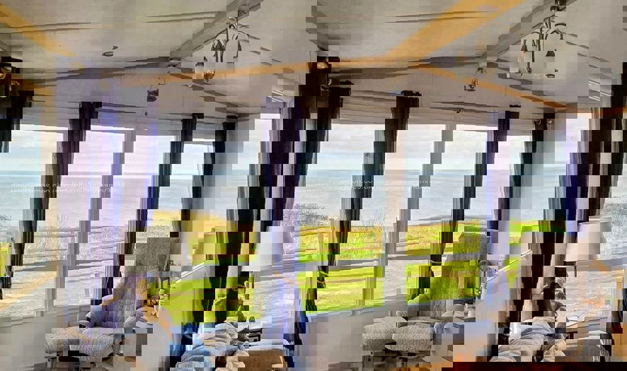 Well-appointed and comfortable, two bedroom caravan with stunning sea views for hire at Trimingham House Caravan Park in Norfolk.