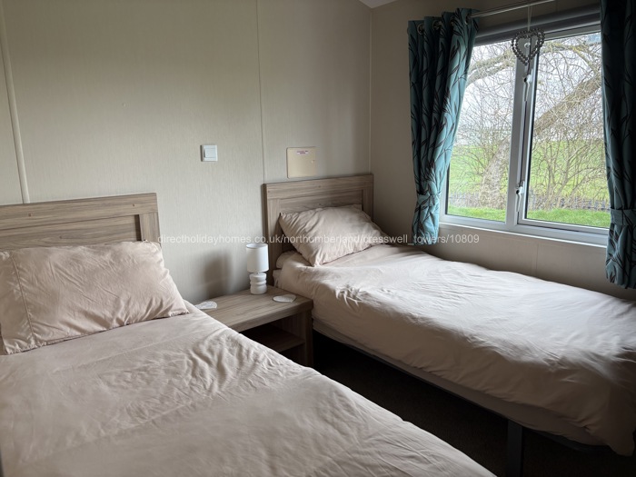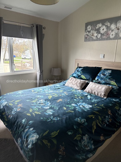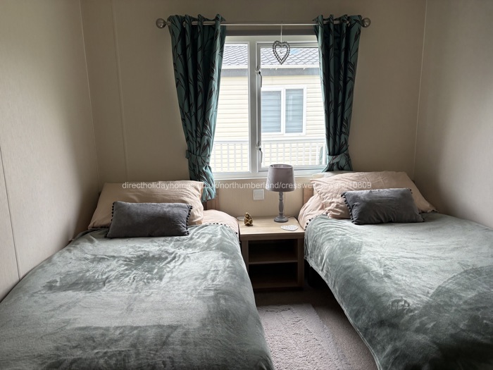 Our dog friendly lodge at Cresswell Towers has 3 bedrooms and sleeps 6 guests. The king size master bedroom has a Smart TV, walk-in wardrobe and en suite shower room. The two twin bedrooms each have two full size single beds, with one of the rooms also having a TV.