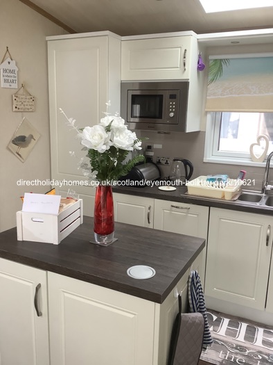 Welcome to Mags and Watty’s Home from Home - a beautiful 43’ x 14’ caravan with sea views for hire Eyemouth Holiday Park in Berwickshire.